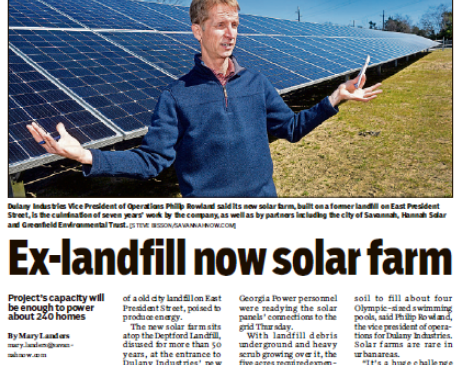 February 15, 2019 – Former Savannah Landfill Gets Day in the Sun with New Solar Farm