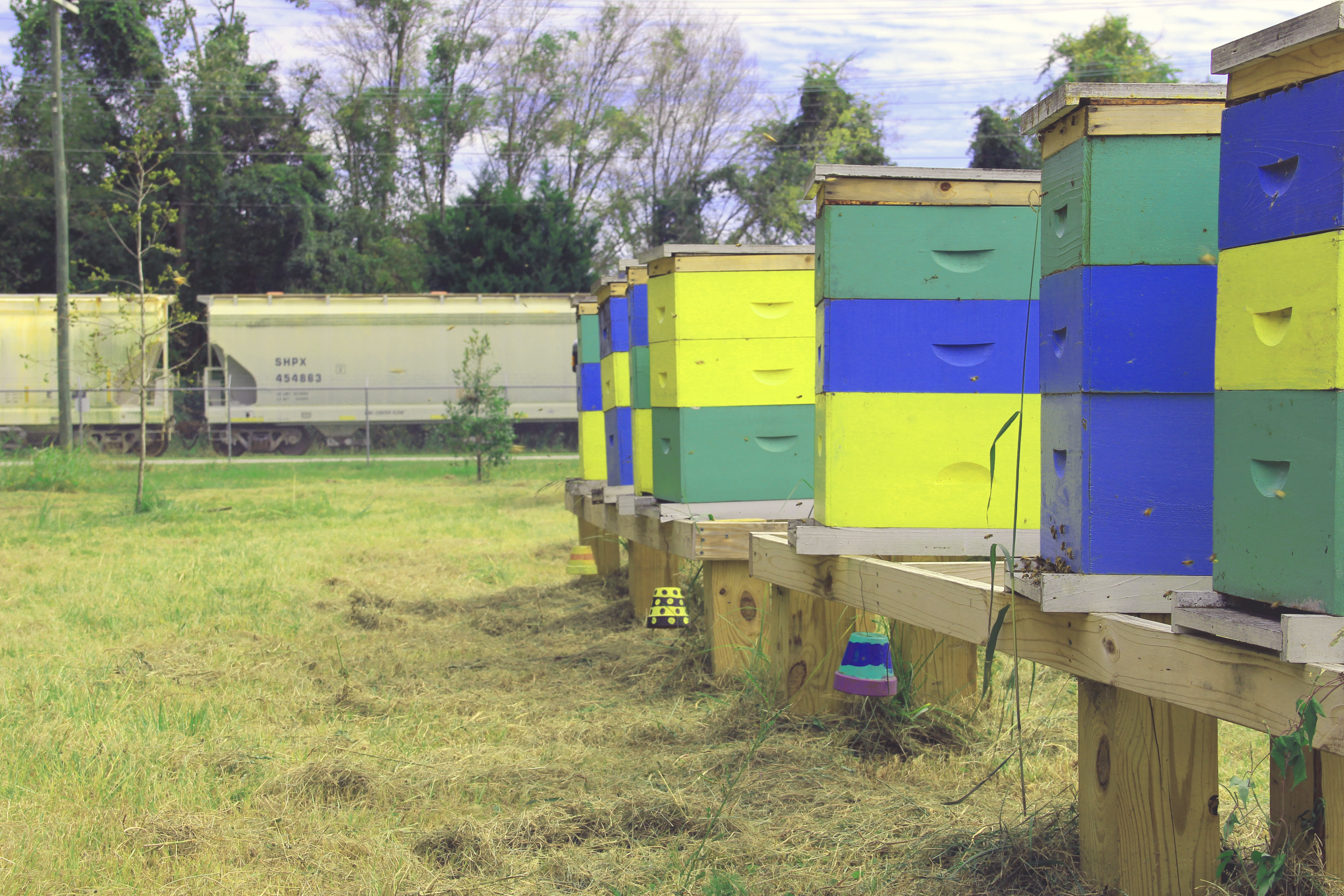 In the first year of the partnership, FH&V placed twelve hives, home to over 240,000 honeybees, at the entrance to the complex beside an existing solar field that powers over 600 homes on a sunny day. The hives, solar farm, and indigenous wildflowers for pollination are positioned on the former City of Savannah Deptford Landfill, which Dulany Industries, Inc. successfully remediated and repurposed after seven years of effort and with the support of the City of Savannah, the Georgia EPD, the US EPA, and the Greenfield Environmental Trust.